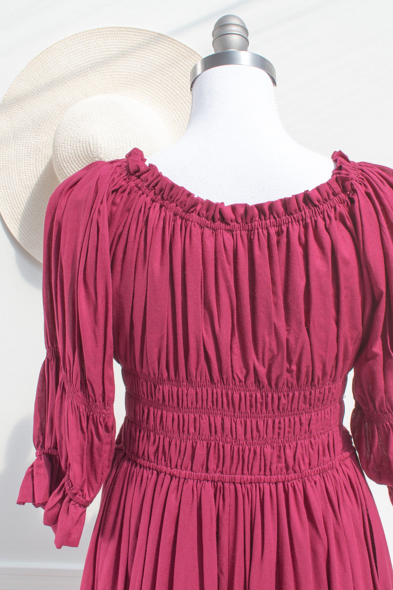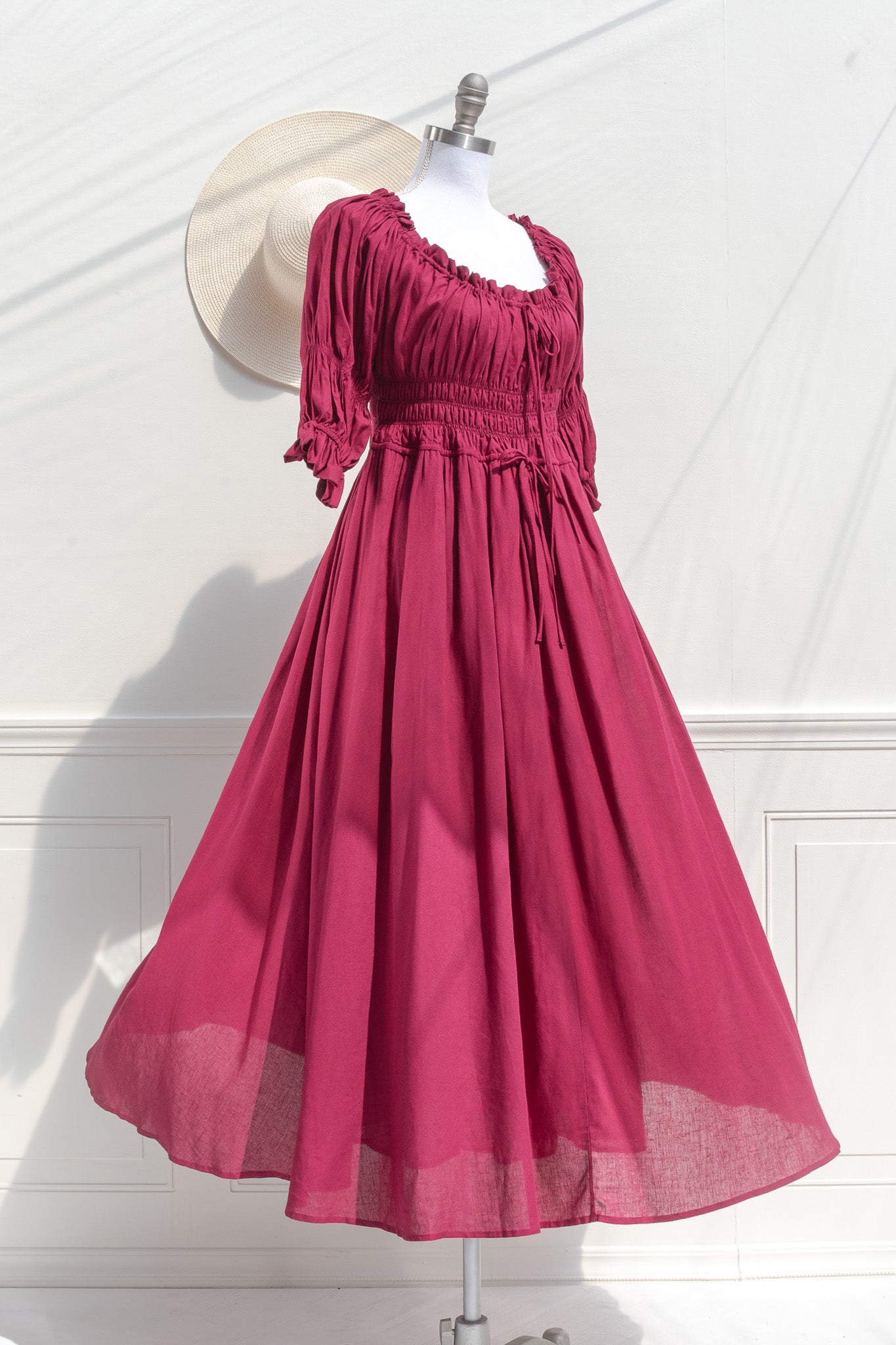The Chloé Smocked Maxi Dress is soft, expressive, and effortlessly feminine, designed to move with a quiet sense of confidence. Crafted from a lightweight viscose and linen blend, it drapes fluidly through the body while the smocked bodice gently shapes and defines the waist. The softly gathered neckline and sleeves add a romantic ease, creating a silhouette that feels both relaxed and composed. In a rich rose tone, it brings warmth and depth to everyday moments, from sunlit afternoons to evenings that linger just a little longer.