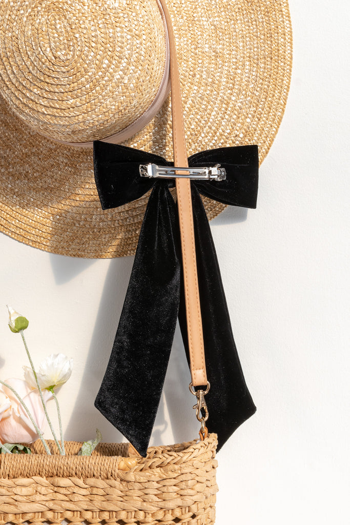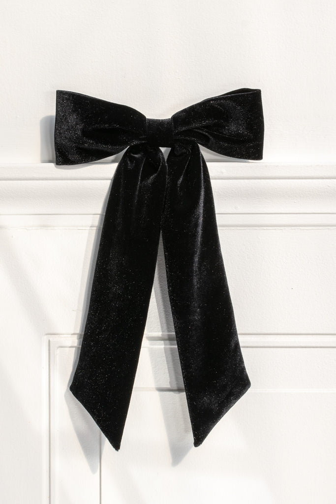 Add a touch of class to your style with the Eleanore Velvet Hair Bow. Featuring soft velvet with a metal hair clip, it will hold your style in place with a bit of drama! Please Note- This item is final sale only.
