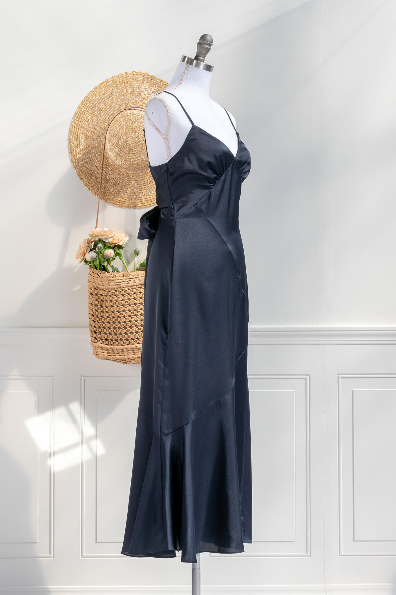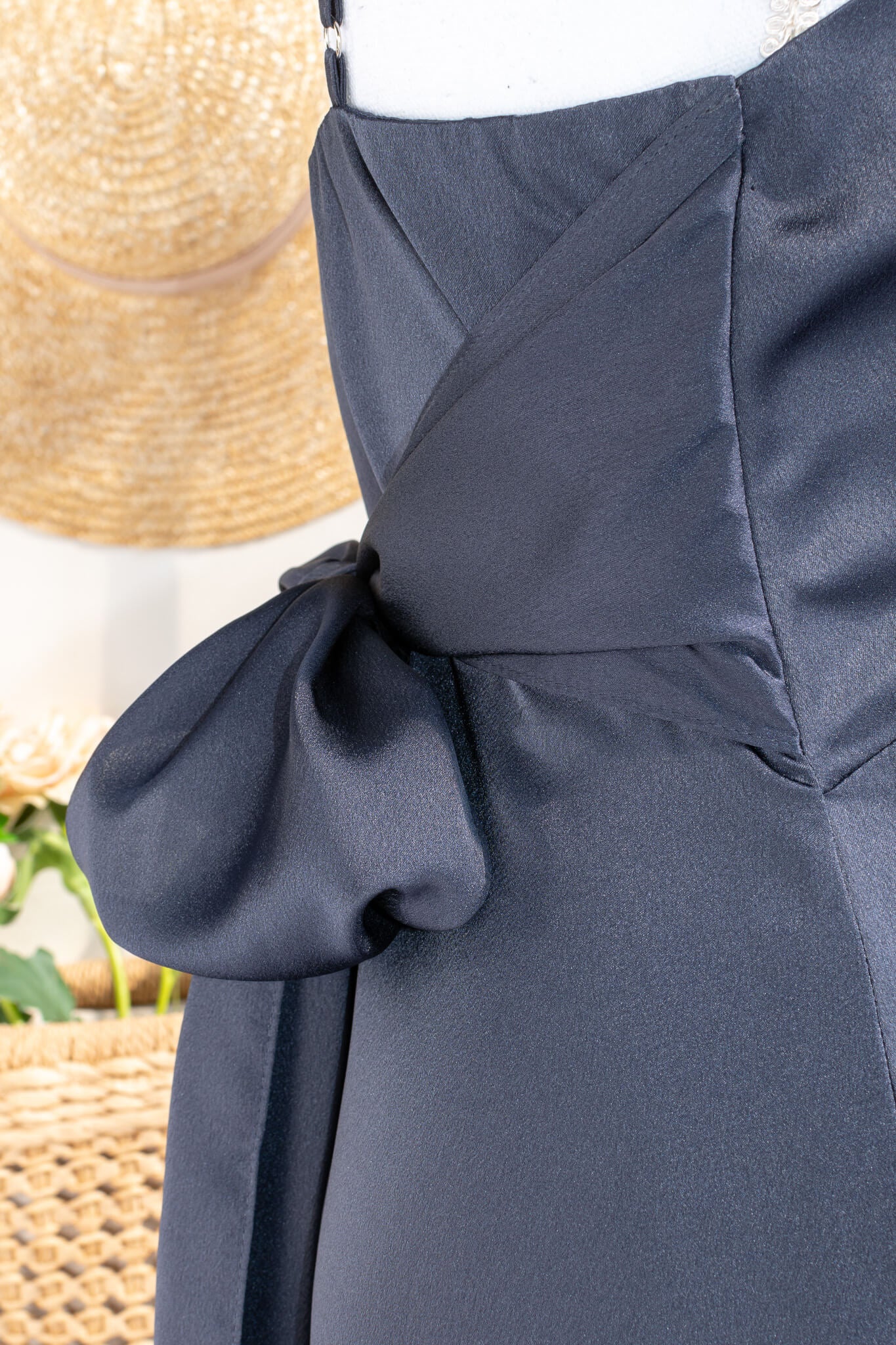 Harlow Satin Dress - Navy Blue