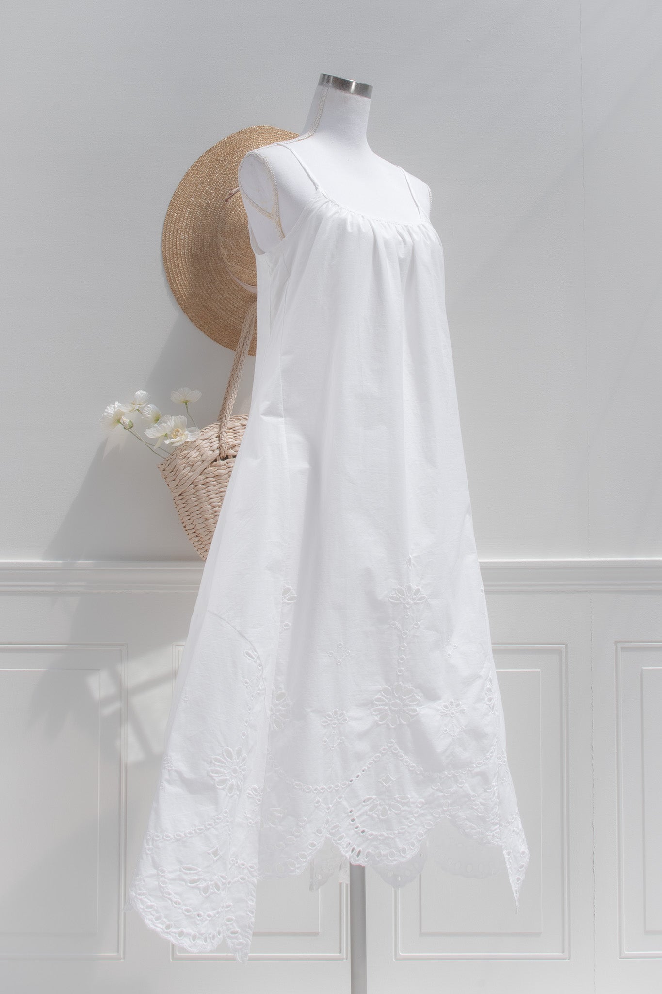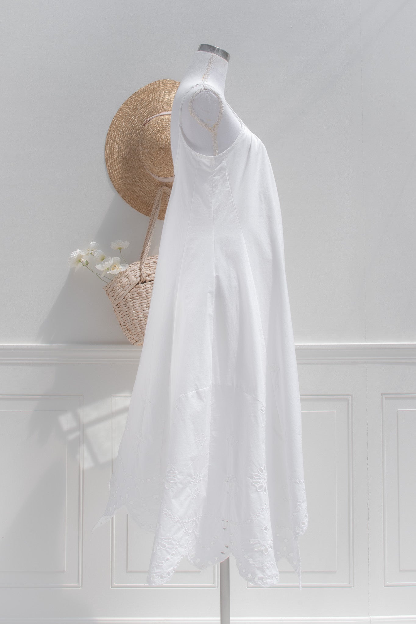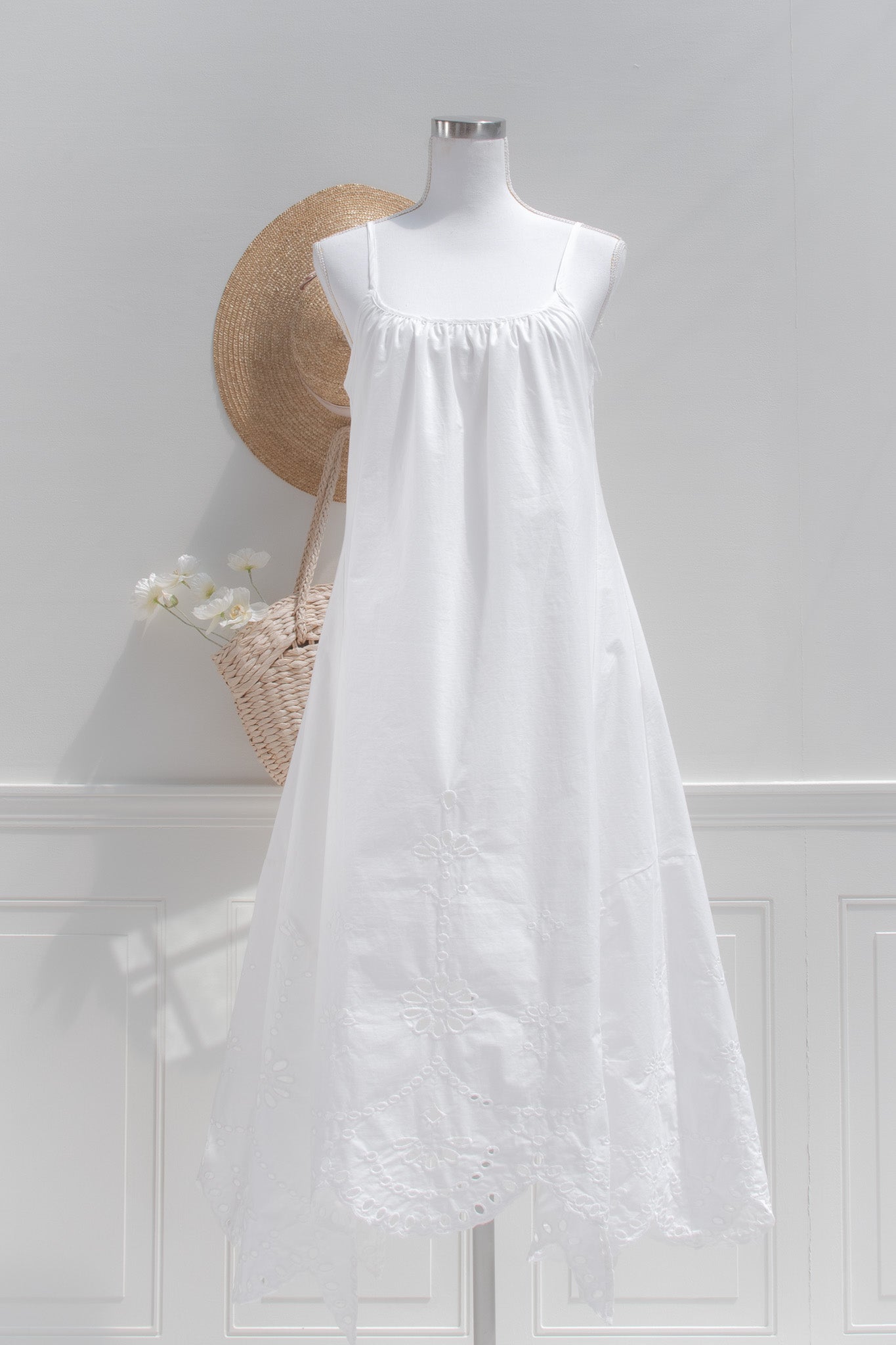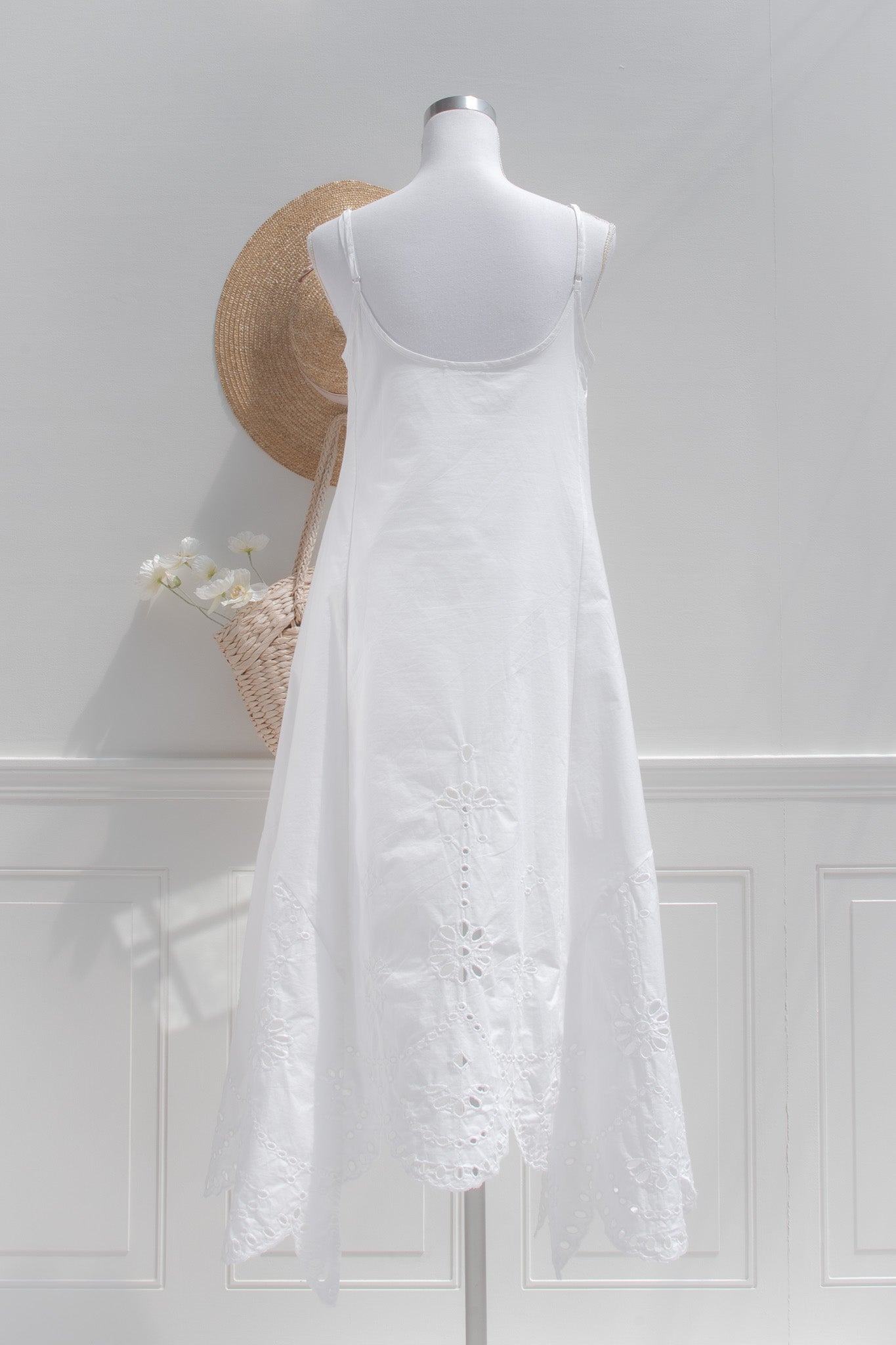 A breezy cotton eyelet lace dress designed for sun-soaked days. This lightweight high-low silhouette features delicate cutwork embroidery and a softly draped shape that moves beautifully with every step. Easy, breathable, and romantic, it’s the kind of dress made for summer escapes- think seaside lunches, warm evenings, and Riviera light. Effortless to wear and endlessly feminine.