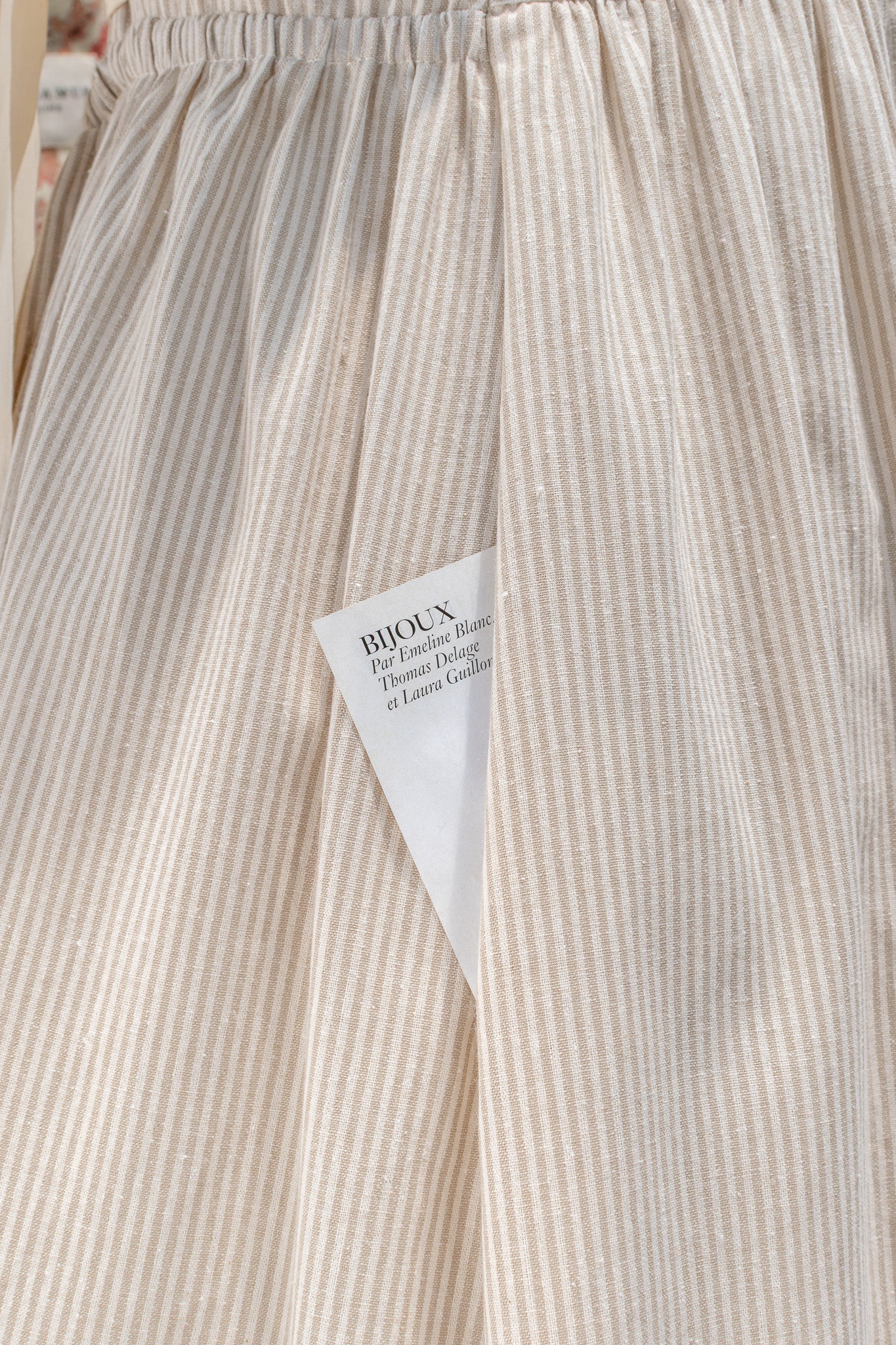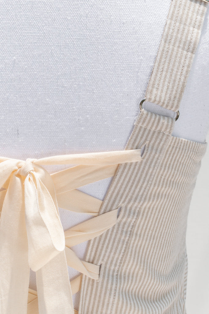 A dress just made for cottage kitchens, farmer's markets, and garden tours, the Lillian midi in striped cotton-blend features an apron-style cut with an open, corset-style back. The side-seam pockets and ruffled hemline complete this darling midi.