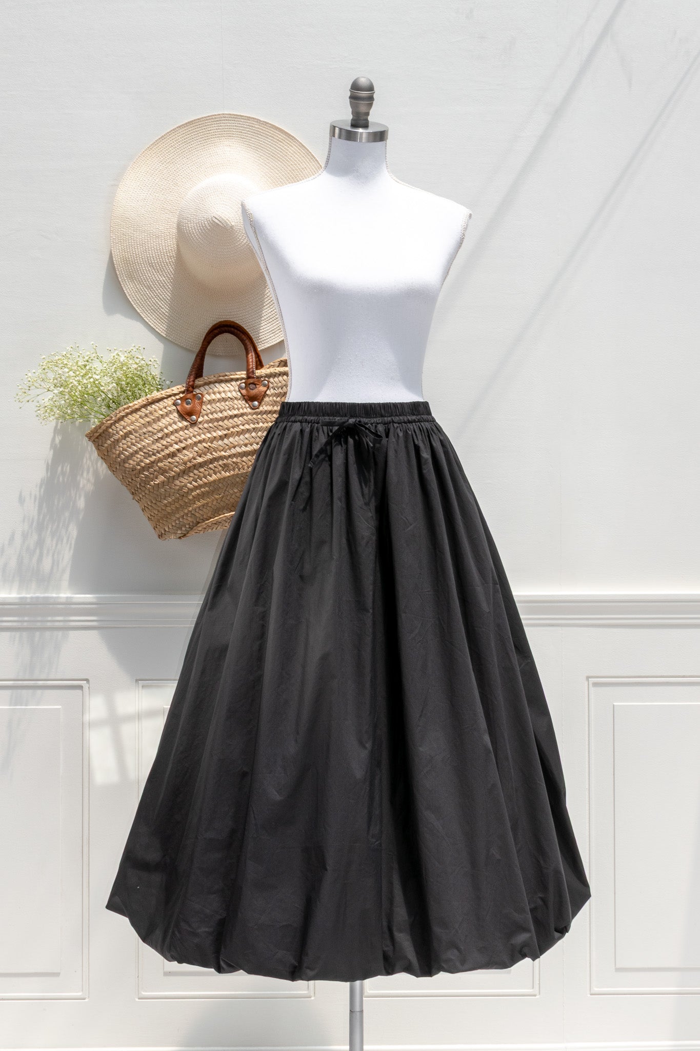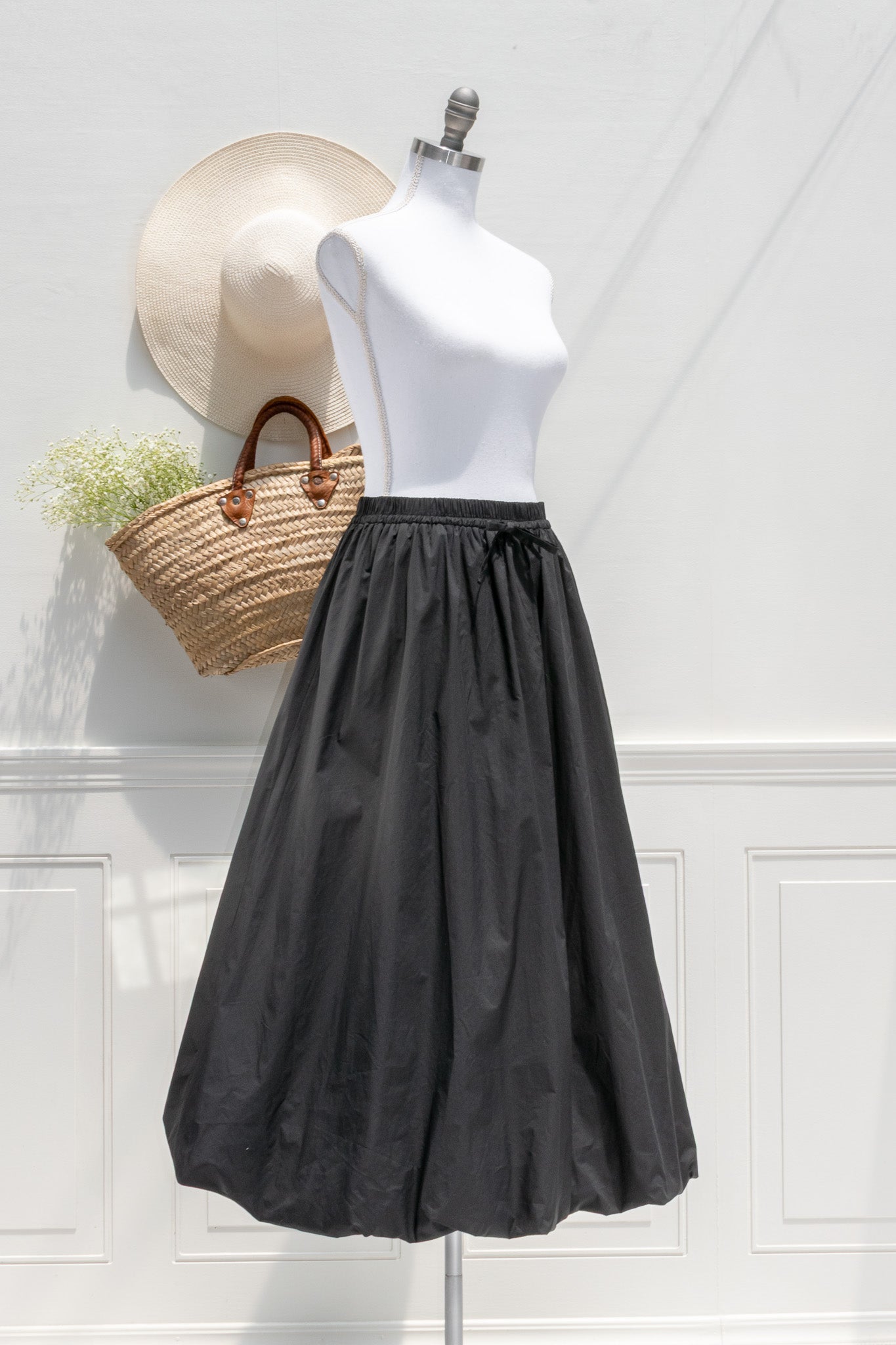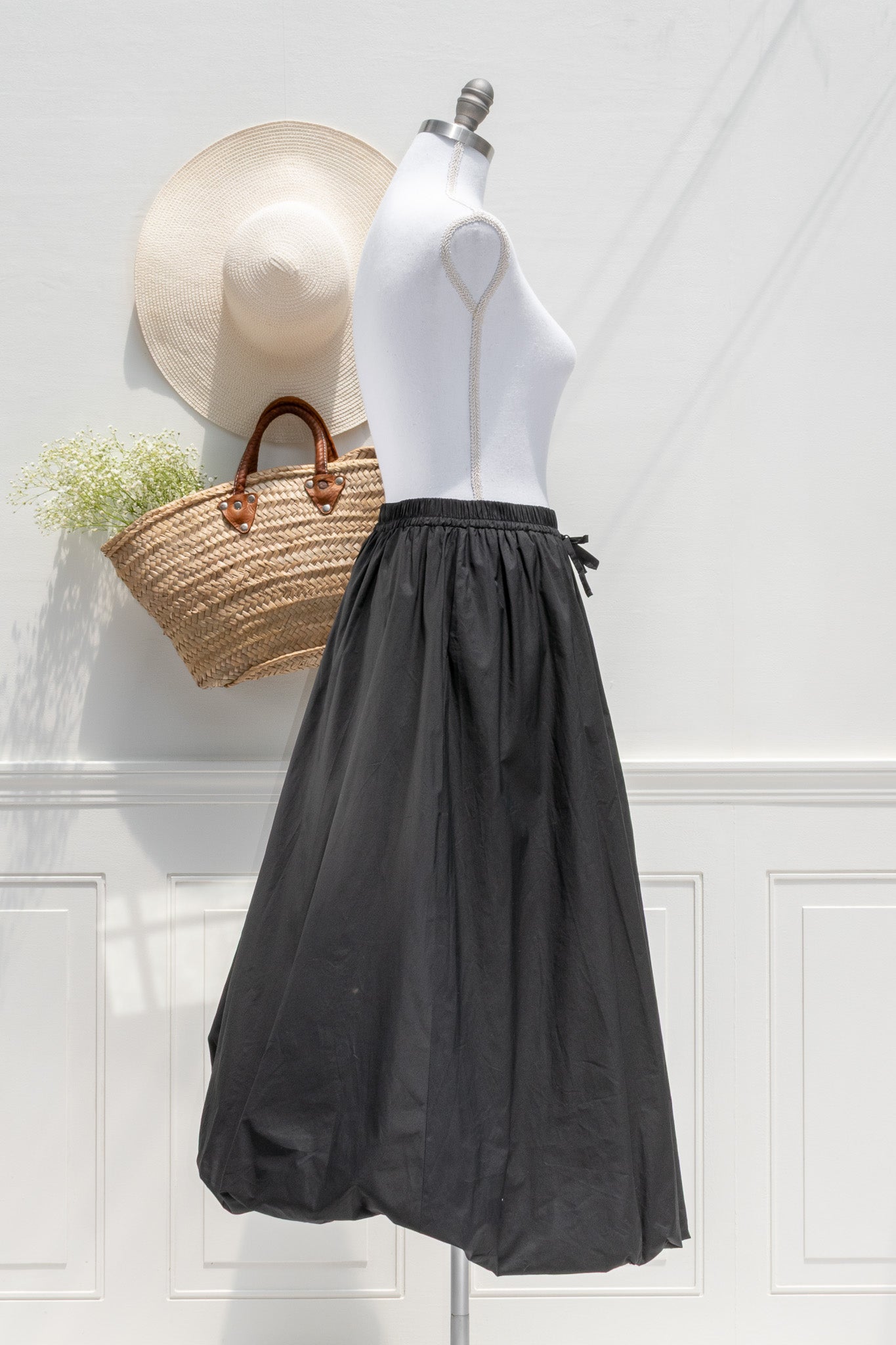 An elegant-yet-versatile skirt perfect for mixing-and-matching, the 100% cotton Adaline skirt in black features a bubble hemline, a comfortable elastic waistline, and flowy silhouette made for twirling!