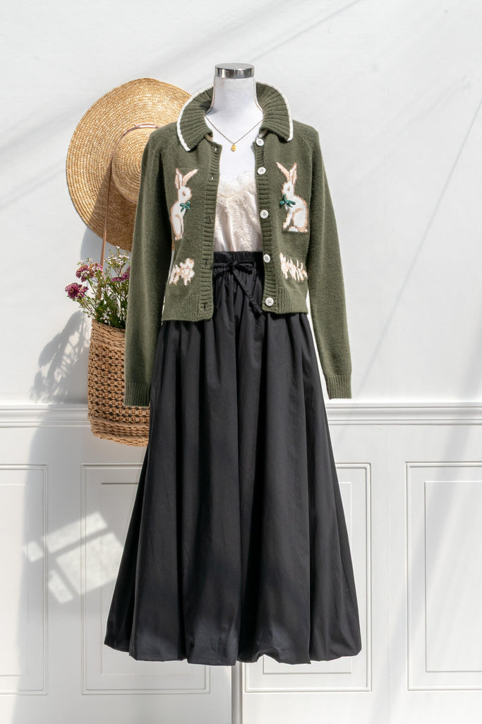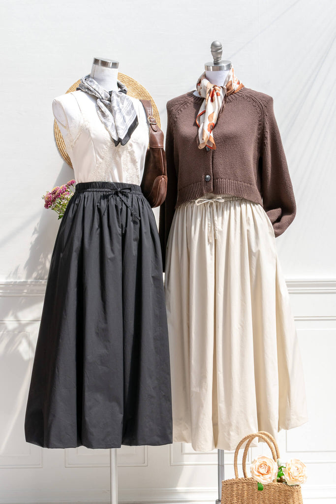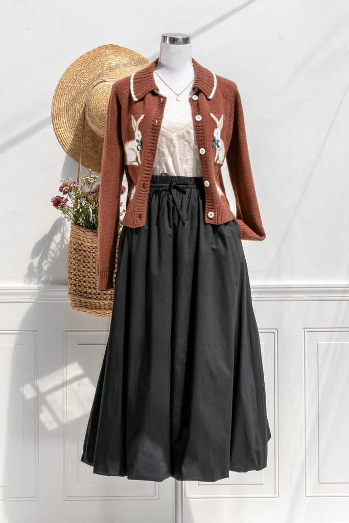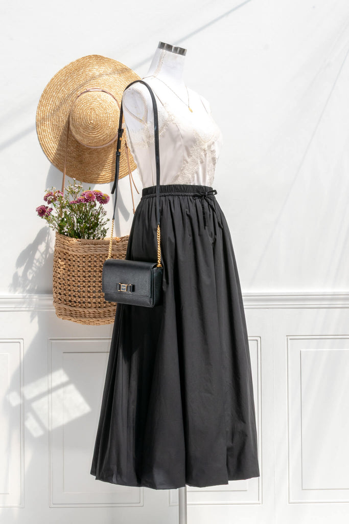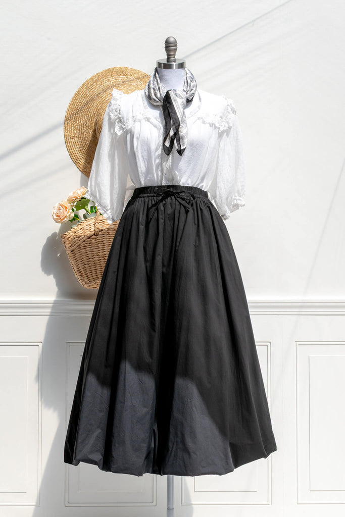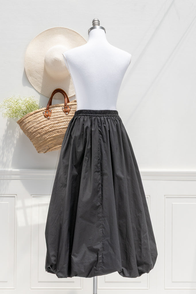An elegant-yet-versatile skirt perfect for mixing-and-matching, the 100% cotton Adaline skirt in black features a bubble hemline, a comfortable elastic waistline, and flowy silhouette made for twirling!