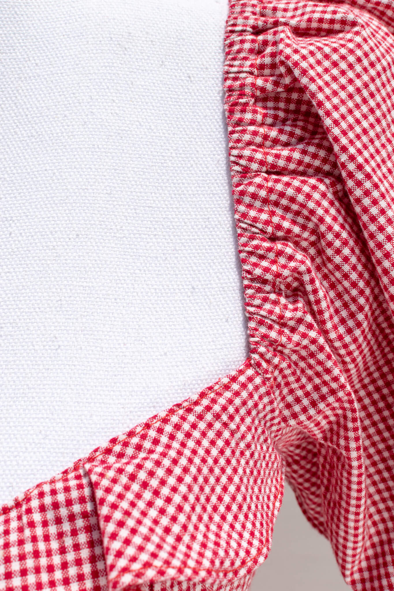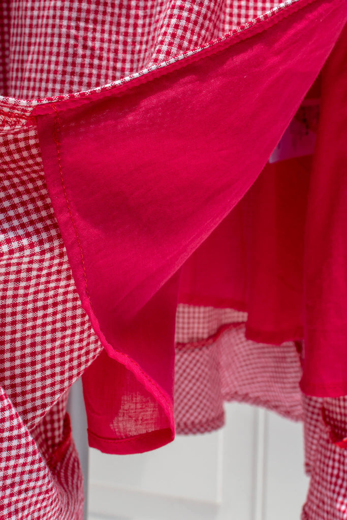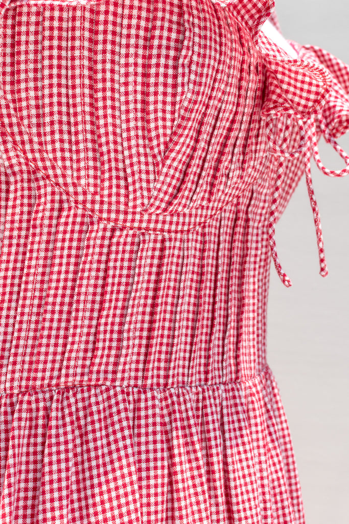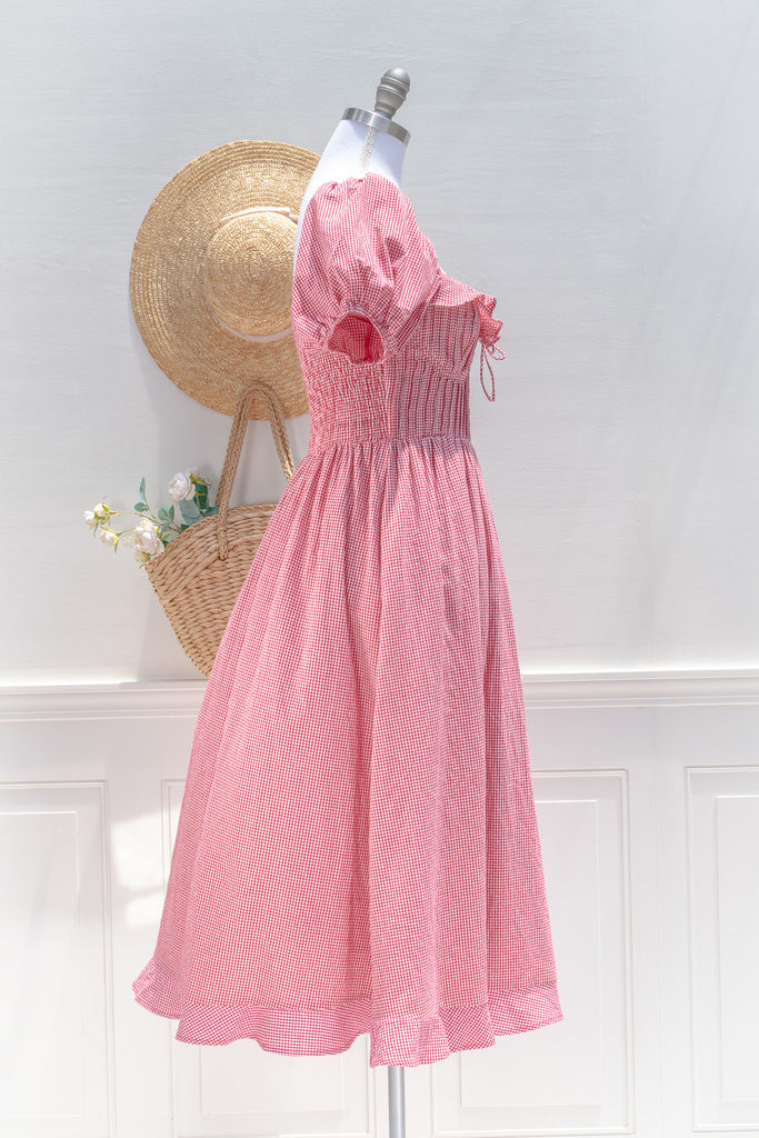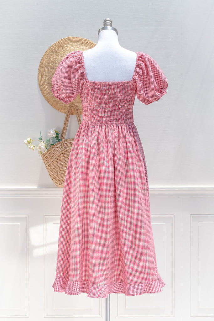 Our most darling dress of the season, the Betsy is picnic-perfect! Features 100% red-and-white cotton gingham, pin-tuck details, puffed sleeves, a side slit, and flattering sweetheart neckline.
