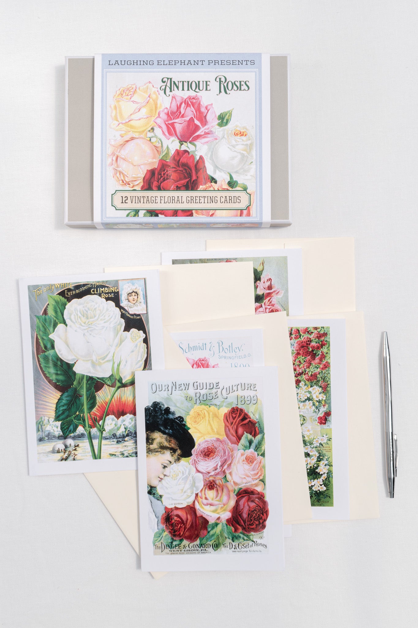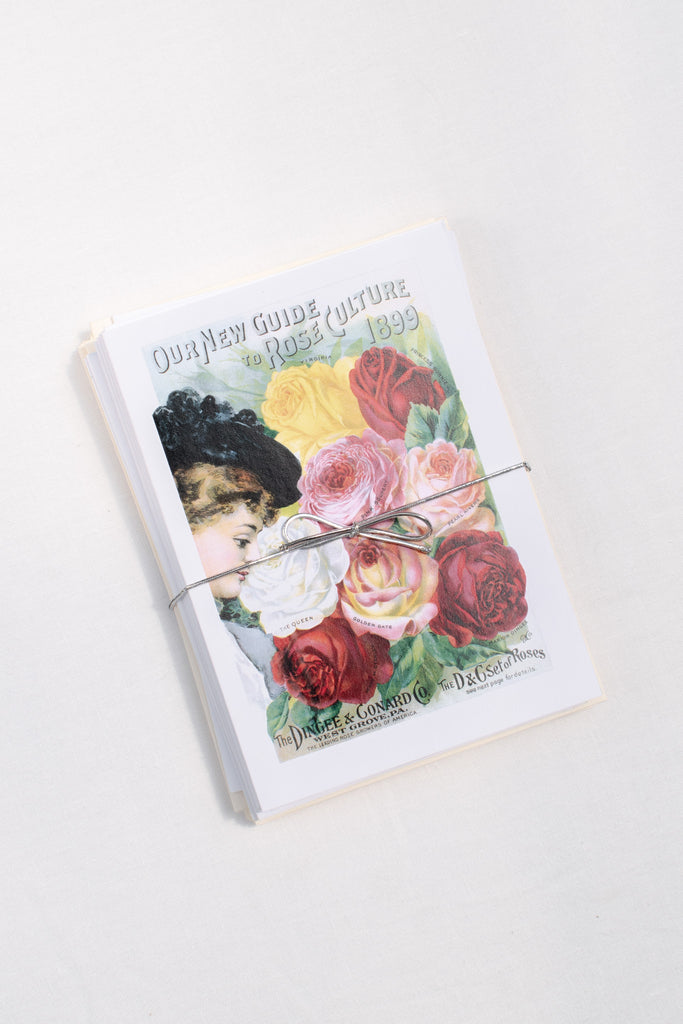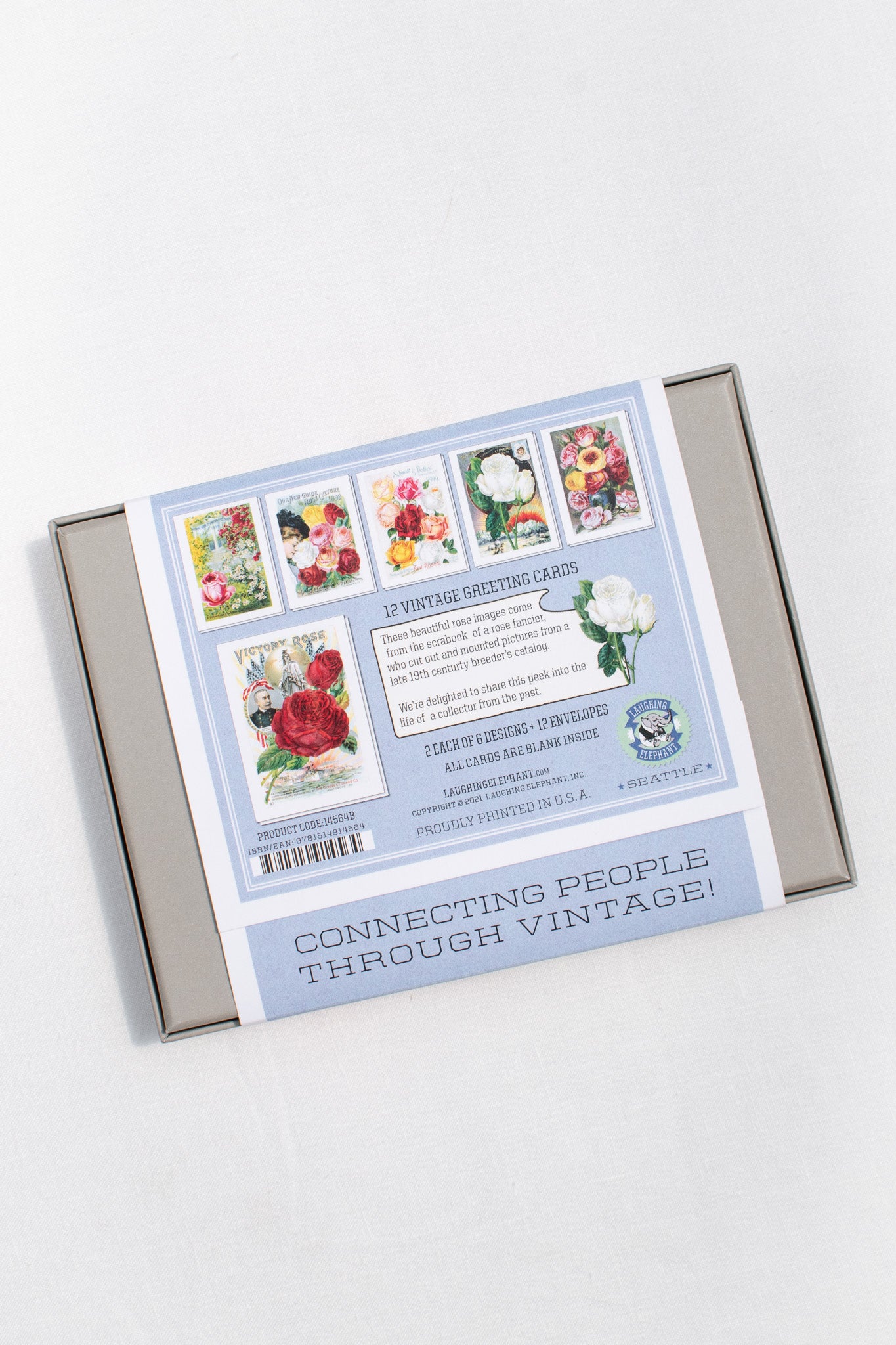 A lovely floral greeting card set featuring reproduction vintage illustrations of roses taken from the scrapbook of a Victoria rose fancier. Set of 12 notecards and 12 envelopes. 2 each of 6 designs.  Please Note- This item is final sale only.